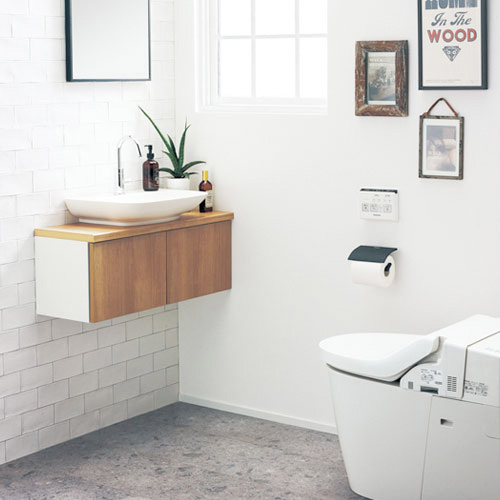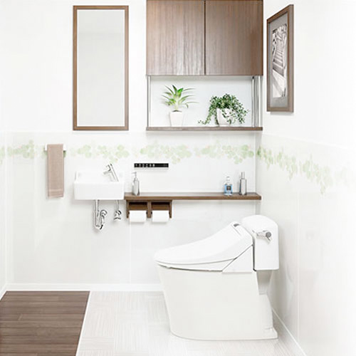 ③手洗い付きもご用意 タンクレストイレと手洗いを一体化。狭いスペースにもおすすめのコンパクトタイプ。